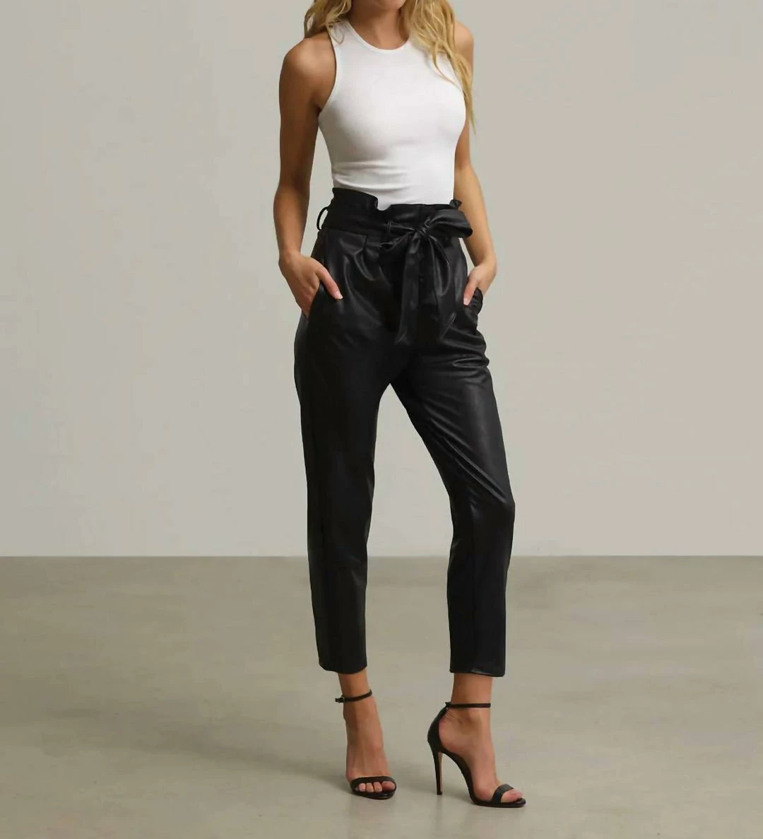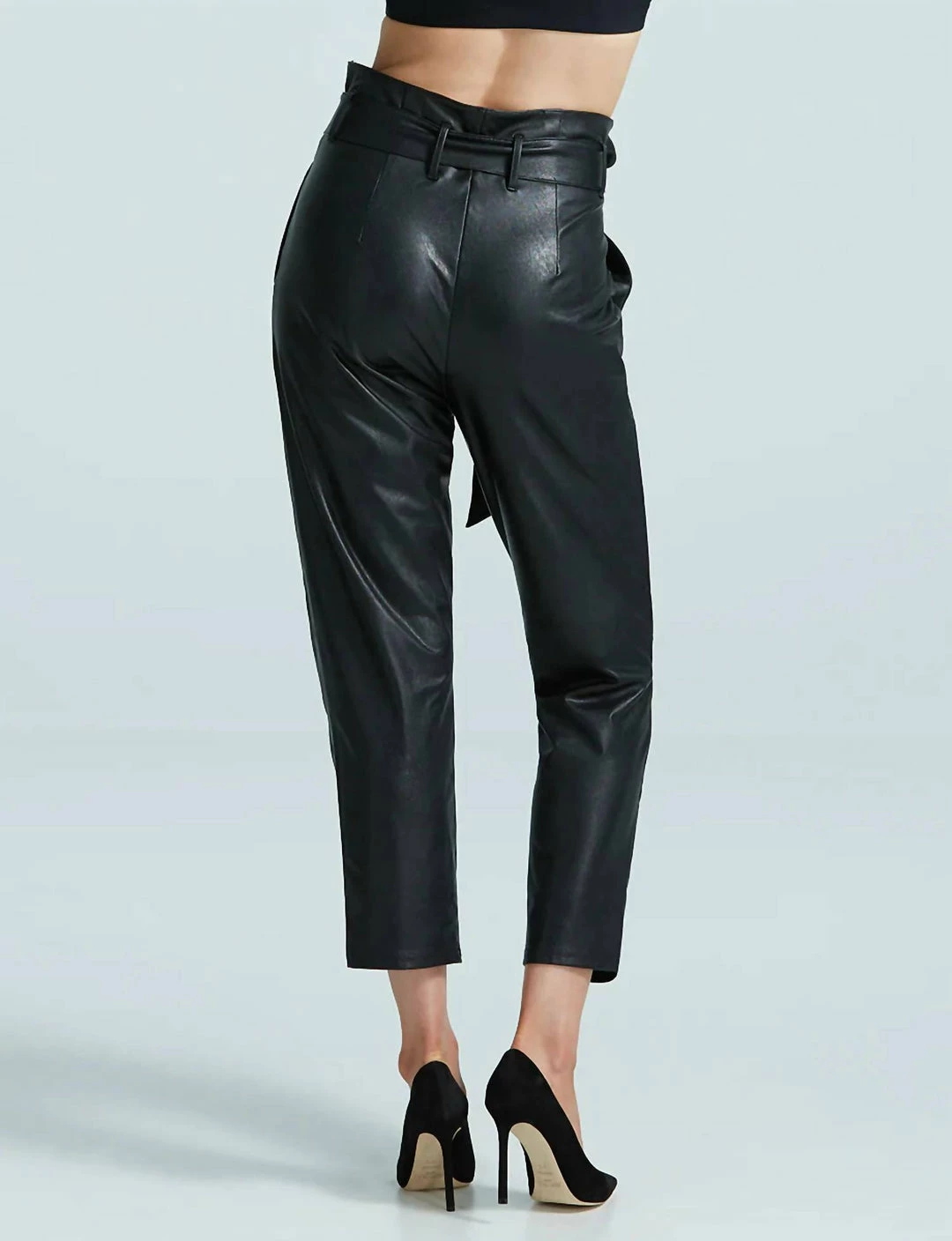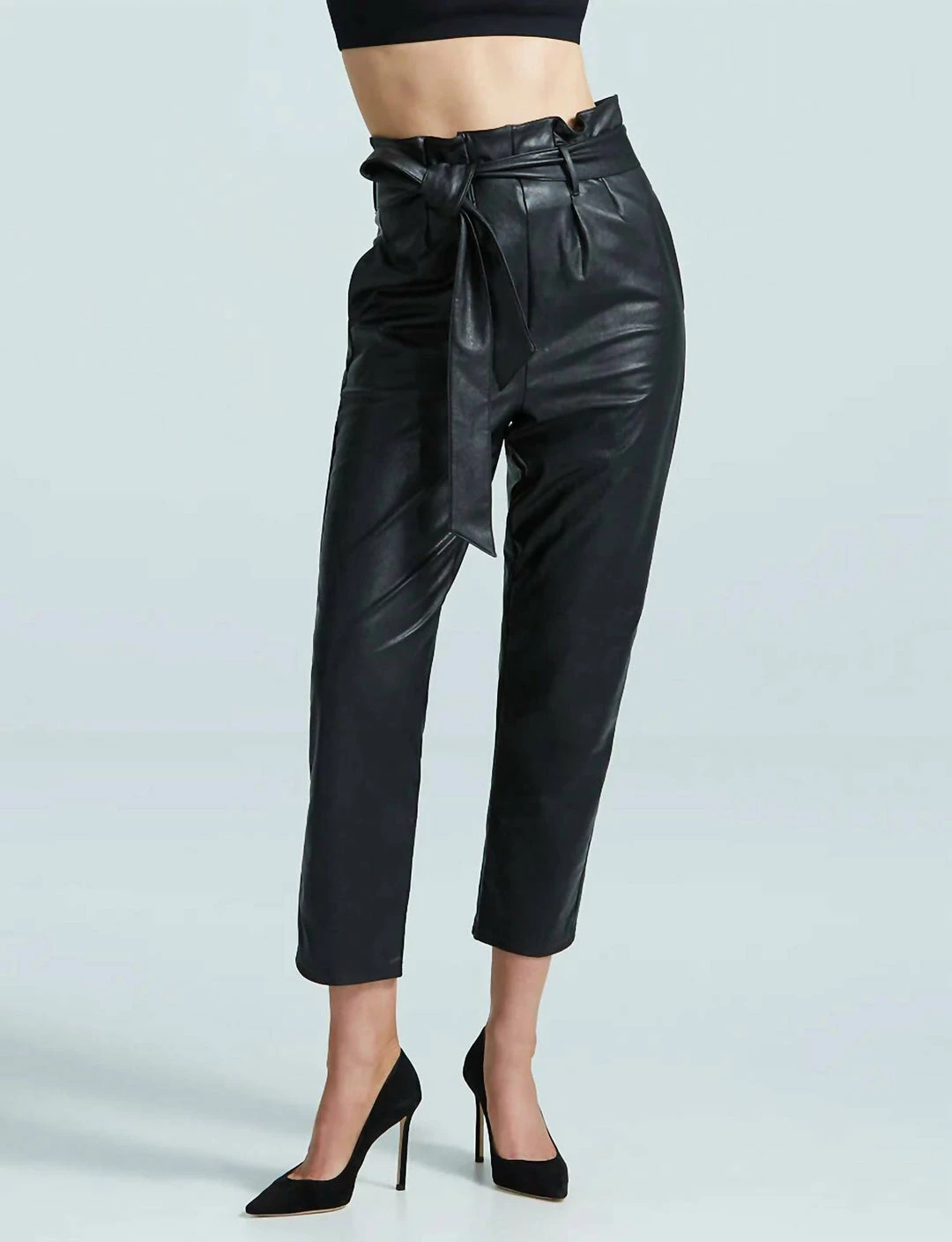 DetailsFour-way stretch faux leather leg Front rise – 14 1/4″; inseam – 24″ for size mediumFit-tested by real womenReal leather look and feelFour-way stretch and high recoveryRelaxed fitRemovable tie beltPockets