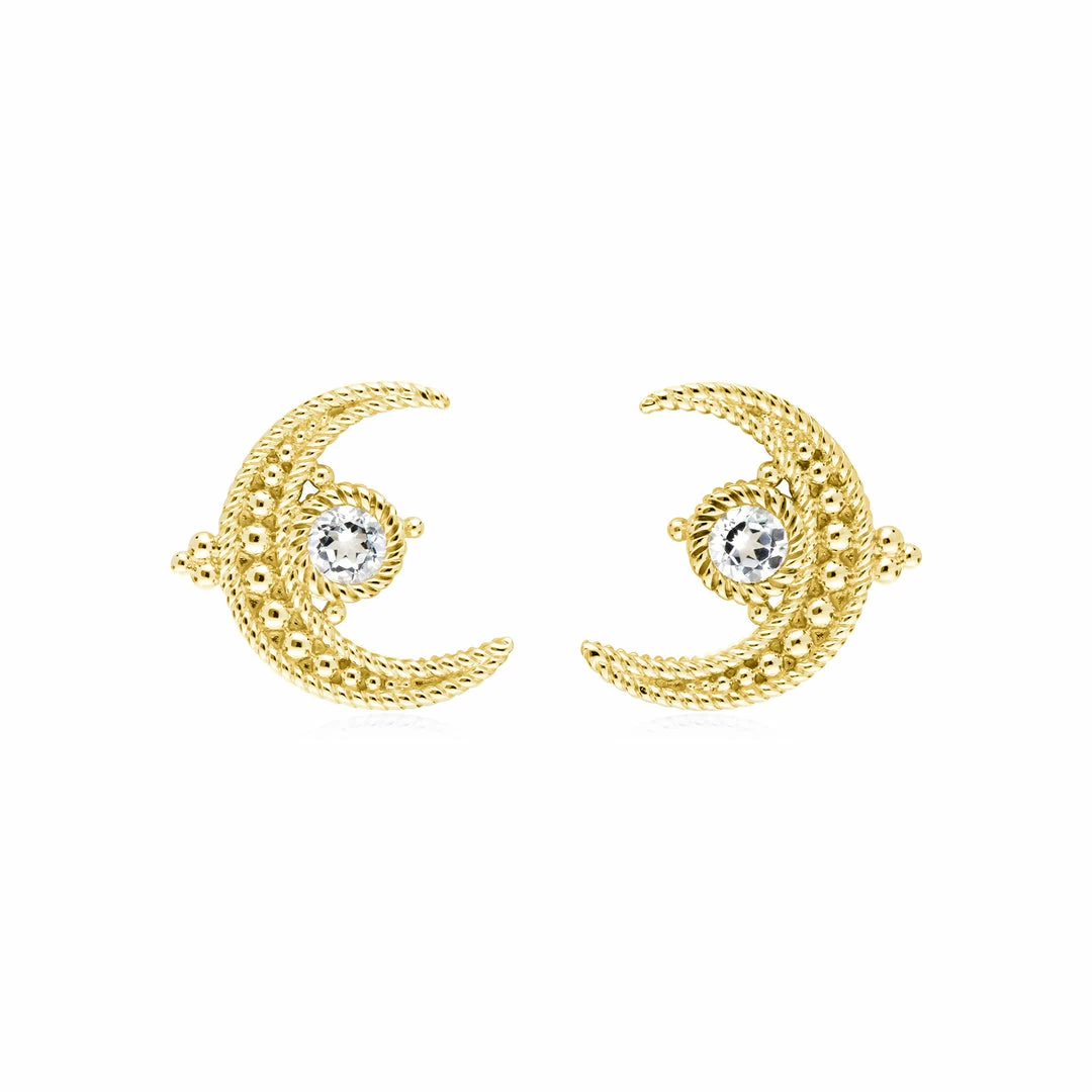 Judith Ripka Little Jewels 14K Over Silver White Topaz Moon Studs