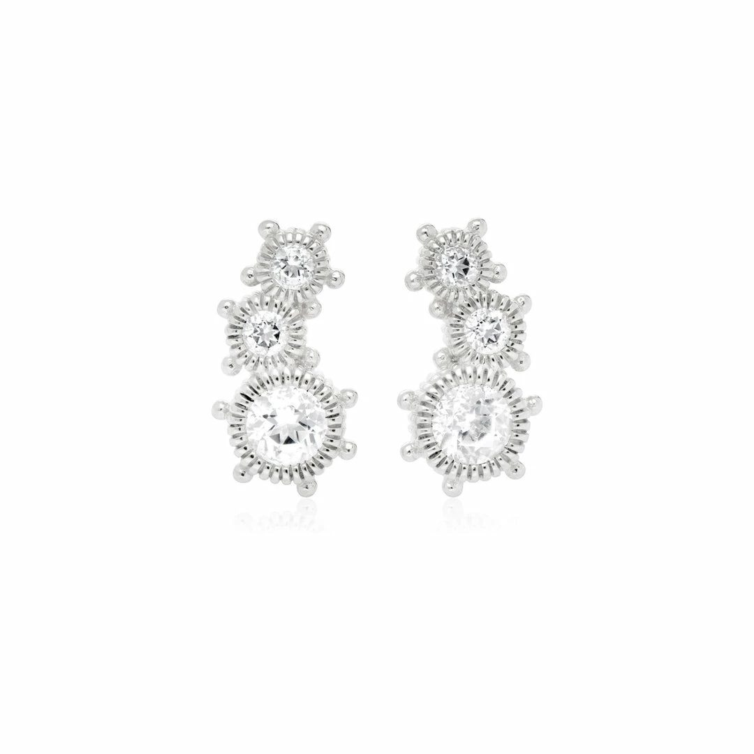 women Judith Ripka Lore Silver White Topaz 3-Stone Studs
