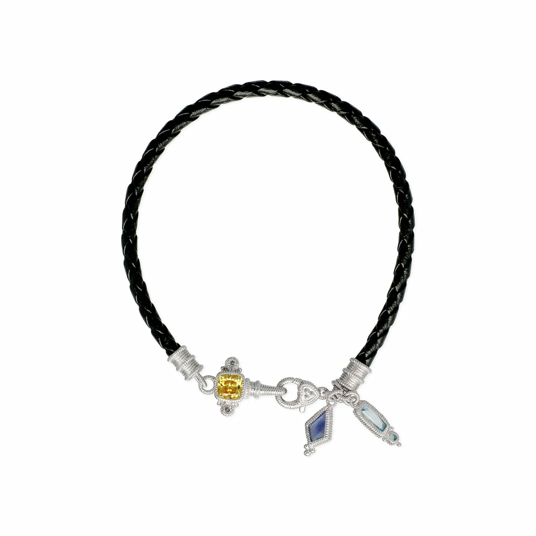 Judith Ripka Silver & Leather 1.33 ct. tw. Gemstone & CZ Bracelet